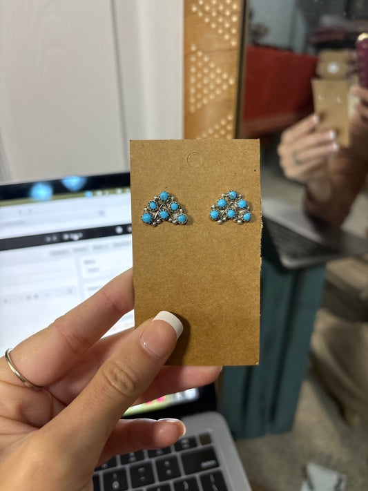 Sterling Silver Magnetite Turquoise Cluster Stud Earrings – Handmade in USA