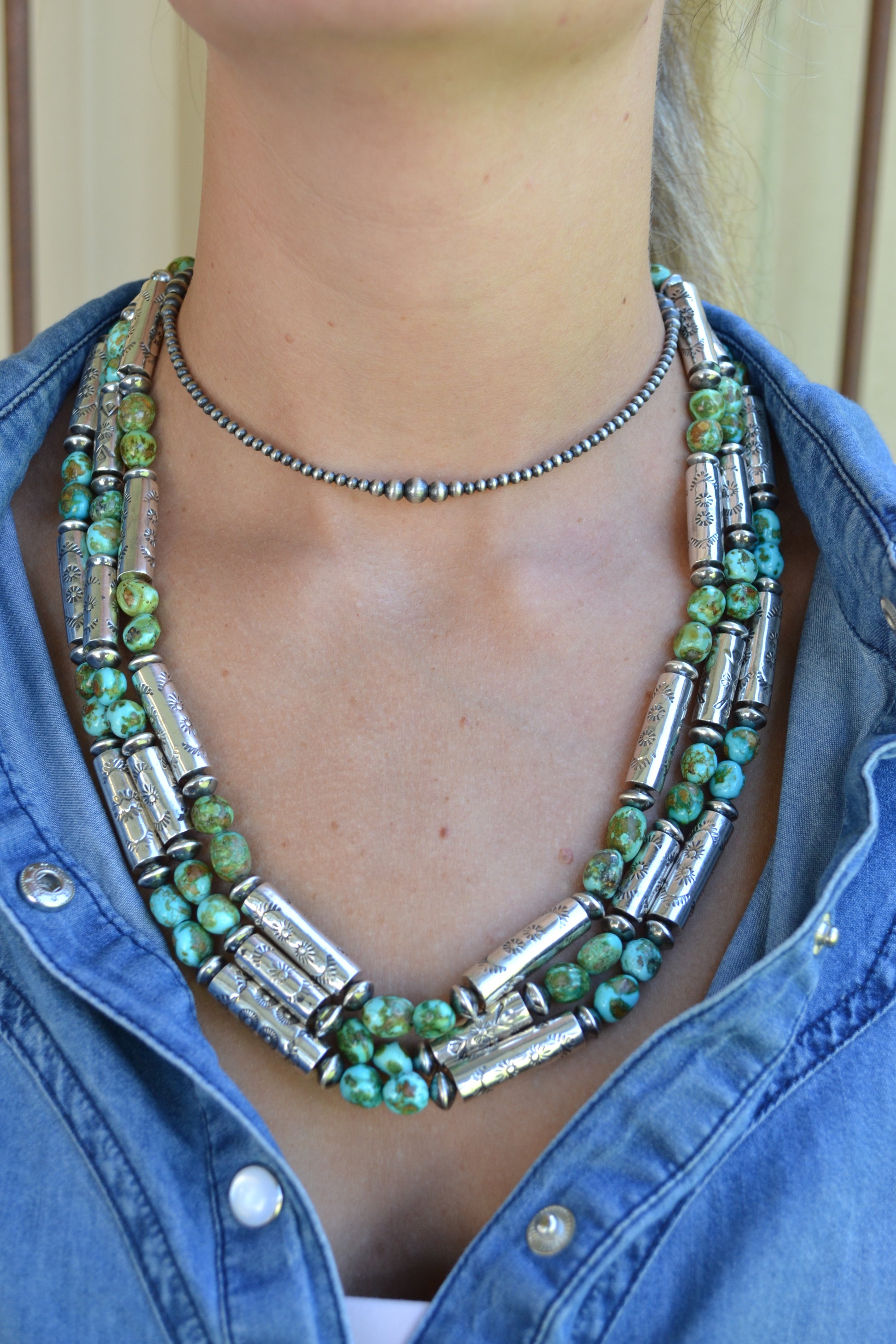 Natural Sonoran Nuggets and Handcrafted Barrel Bead Necklace