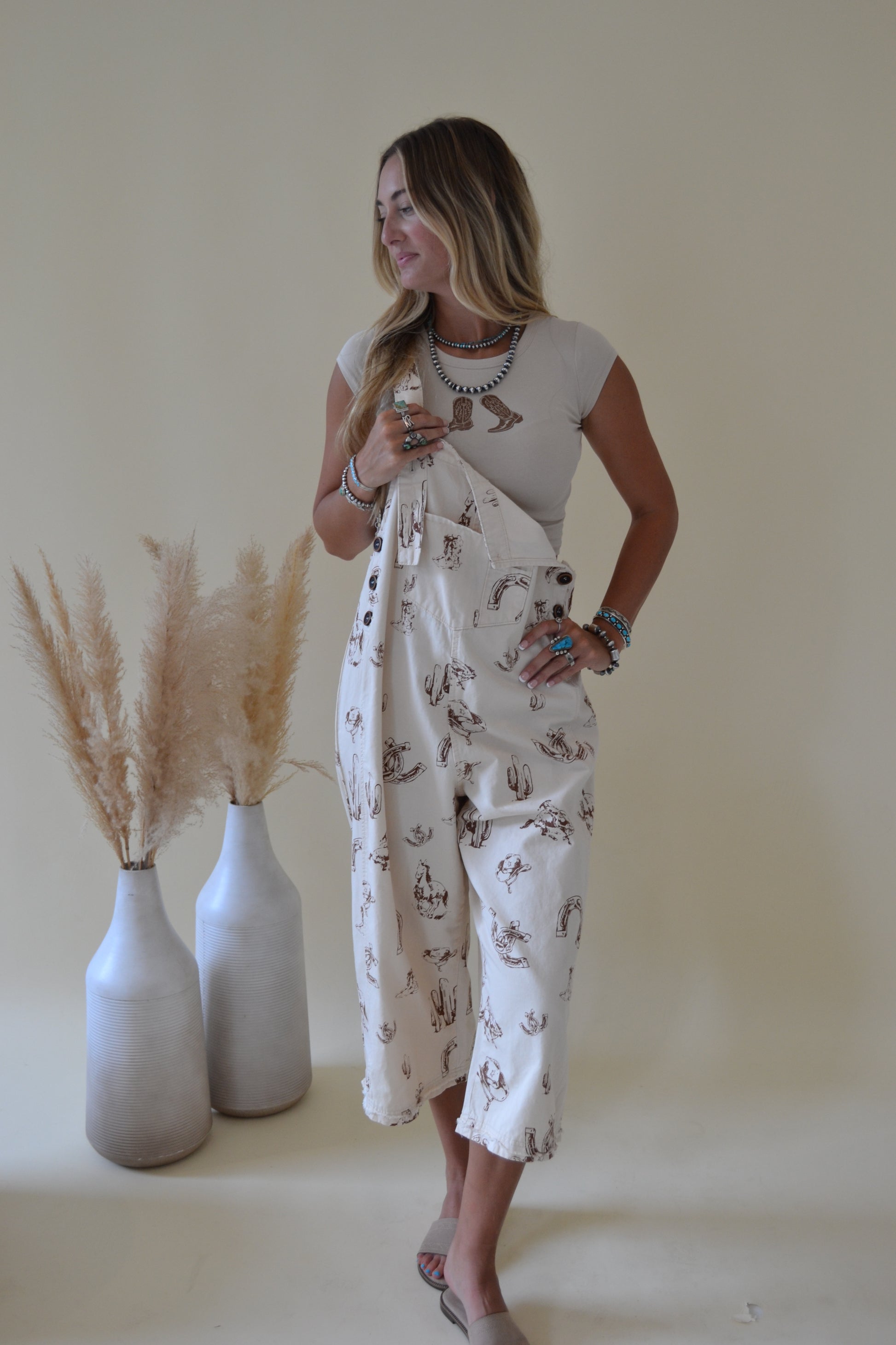 Western Printed Twill Overall Pants
